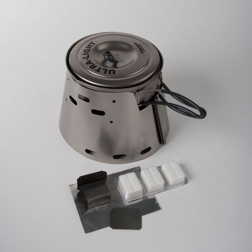 "It's nearly weightless, shields the flame from wind, increases efficiency, and stores inside the short/fat pot of your choice.....it may be the coolest, lightest and most unique outfit out there."