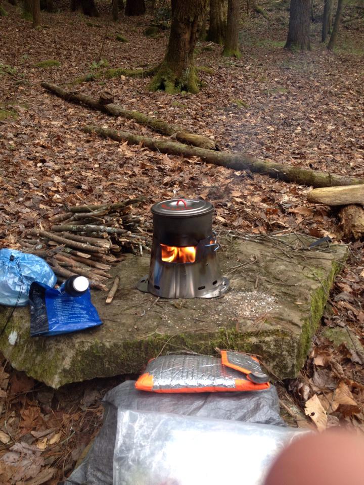 Matthew Smith sends us these shots of his Toaks 850 Fissure Ti-Tri cooking dinner in the Burbage forest in the English Peak District.