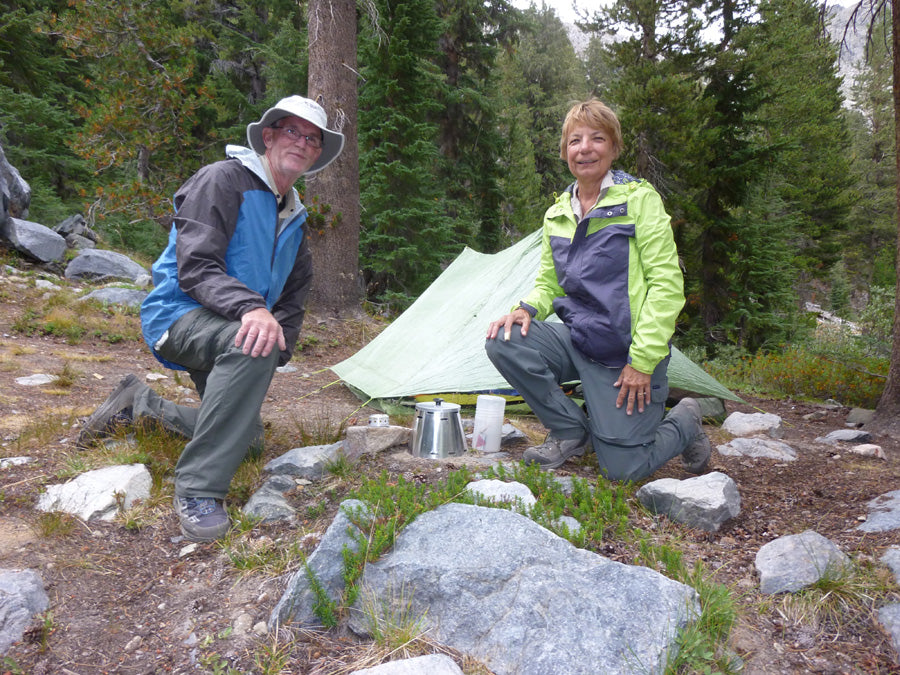 Ed and Pam Ponder showing off their Caldera Cone at Iceberg Lake in the Eastern Sierras near Mt. Ritter!