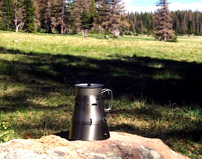 Reggie Garrett sends us this picture of his Fusion at a camp at Burro Lake in the South San Juan Wilderness of Colorado just east of the Continental Divide. This time cooking up spicy black beans, rice and cheese.