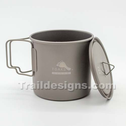 This ultralight mug is made of thin titanium material of 0.3mm thickness and comes with a handled lid, mesh sack with lockable slider, and gradation marks in ml and oz. It can nest Toaks Titanium 450ml Cup or a100ml gas canister. Also, without the lid in place, it can nest the 32oz Nalgene, 38oz Nalgene stainless or 42oz Klean Kanteen.