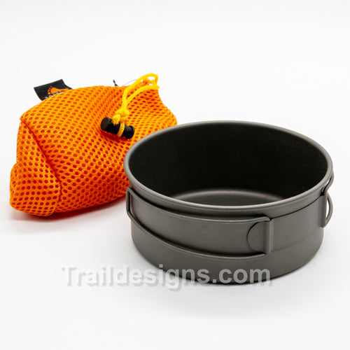 Lightweight, corrosion-resistant, and easy to pack, the Toaks Titanium 550ml bowl (diameter 118mm) nests perfectly with the Toaks Titanium 1100ml Pot with Pan, Toaks Titanium 1100ml Pot with Bail Handle or the Toaks Titanium 900ml D115mm Pot. When paired with these pots, it can be used as a double boiler creating a cooking combo without consuming space in your pack.