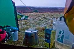 Chris Townsend's Caldera Ti-Tri in use on a cold, damp morning in Glen Tromie in the Scottish Highlands after a night of rain and sleet. The temperature was around the freezing point