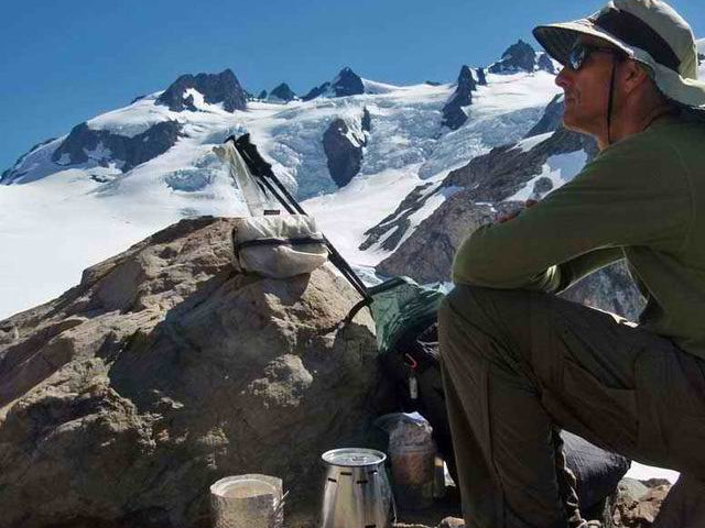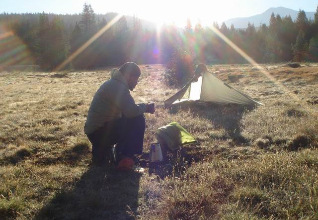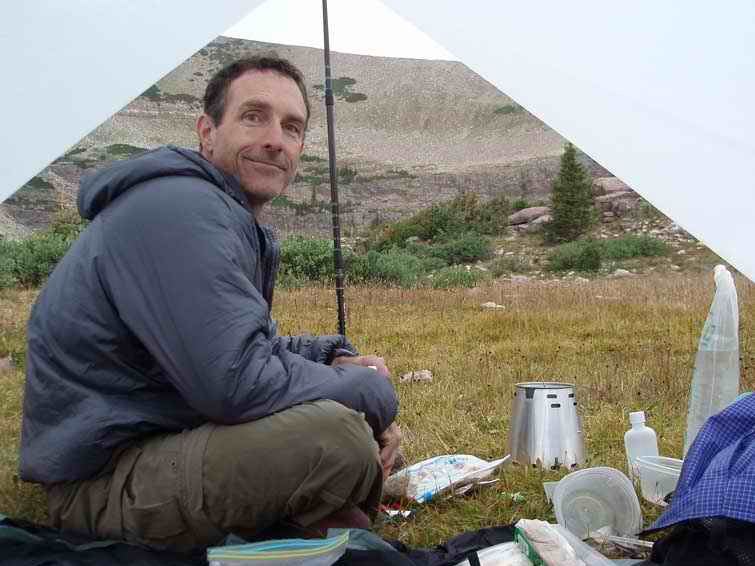 Alan Dixon at 11,000 ft under his 8oz tarp testing out his 2oz Caldera. "Life is good!"