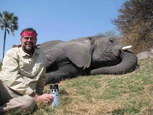 Rand posing with an elephant near Baine's Camp in Botswana