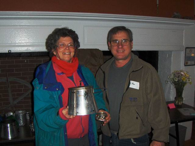 Judo shows off her Caldera Cone from her successful 2007 thru-hike of the AT at the PA-Ruck! (George Andrews basks in the reflected glory