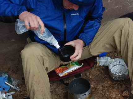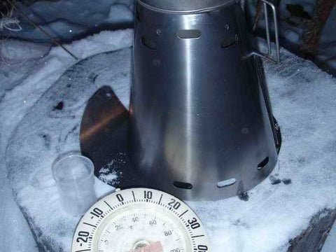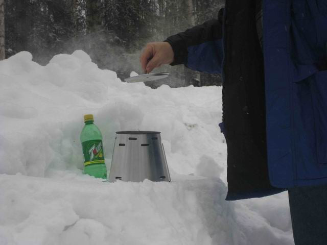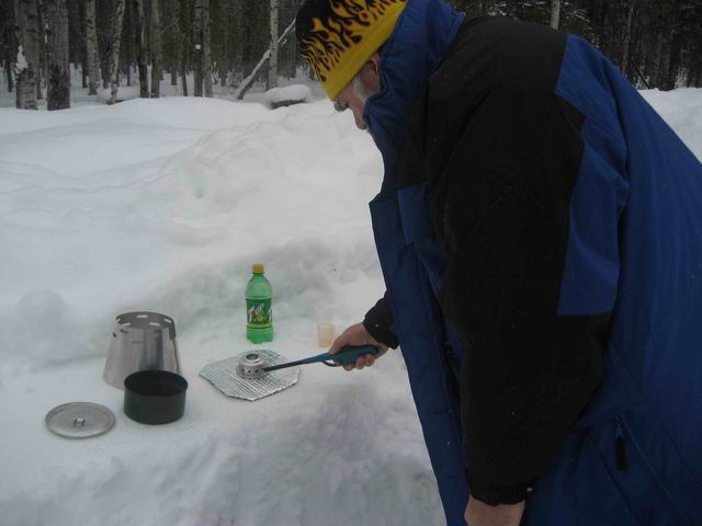 Kirk Lang in Wasilla Alaska, Feb. 2007 11:00 am.....20 degrees F....5 minute boil on 1.5tbs