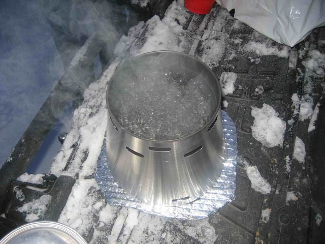 Caldera System bringing an ice/water mix to boil in 23degree weather on 3/4 of an ounce of alcohol in the Colorado Rockies.