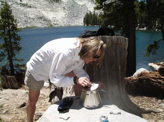 Marta showing off her Caldera on the JMT - Summer 2007