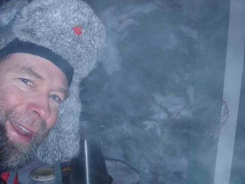 Paul Davis making breakfast with his new Ti-Tri in Whitehorse, Yukon Territory, Canada at -29?C/-20?F.