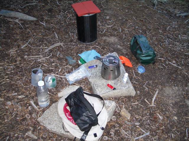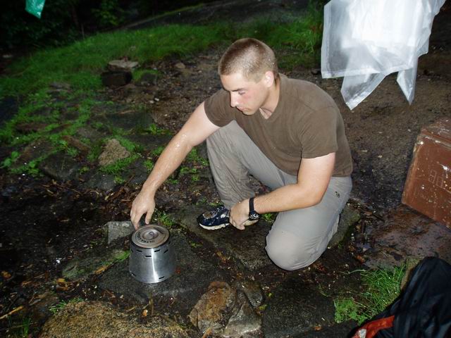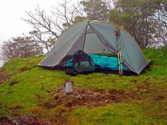 Caldera System fighting off the rain on Baldface Mountain in the White Mountains of New Hampshire, Saturday July 22nd, 2006 at the South Baldface Shelter. Thanks for the pictures David!! (a.k.a. "Tinker").