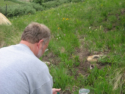 Russ Zandbergen doing field tests of the Caldera Fissure on the JMT