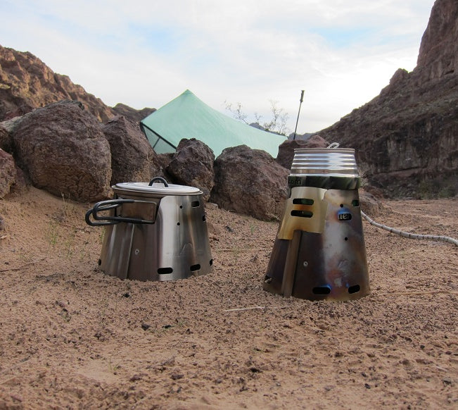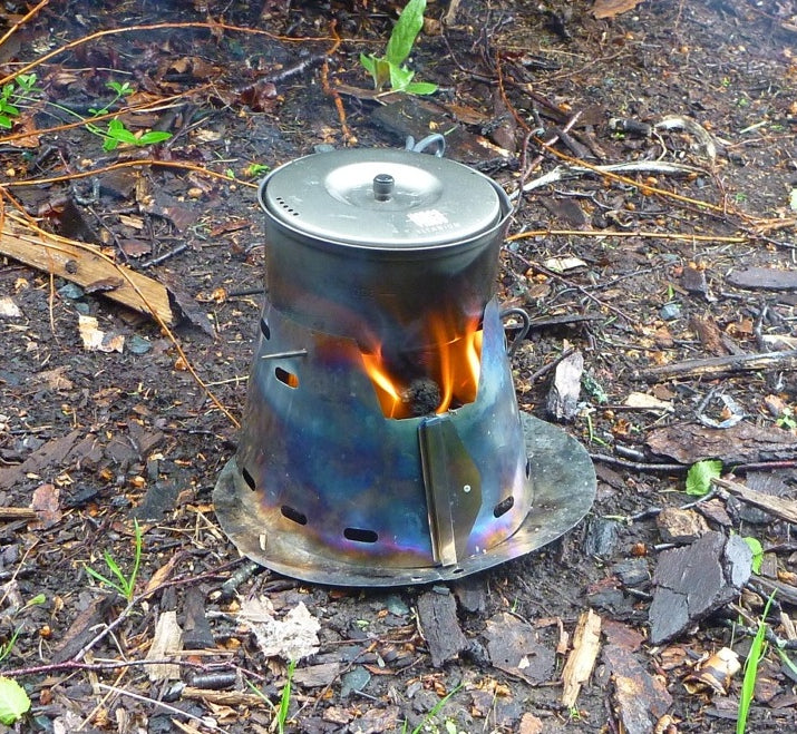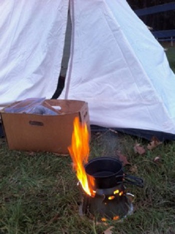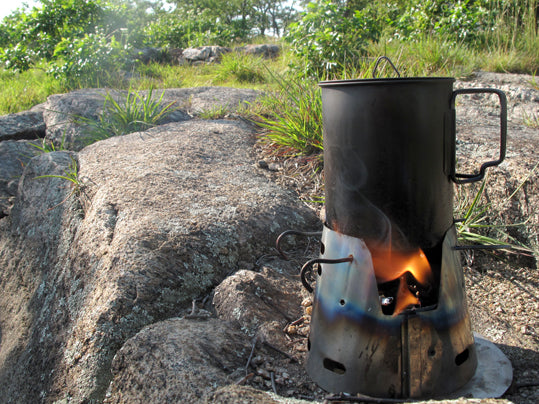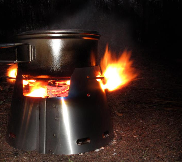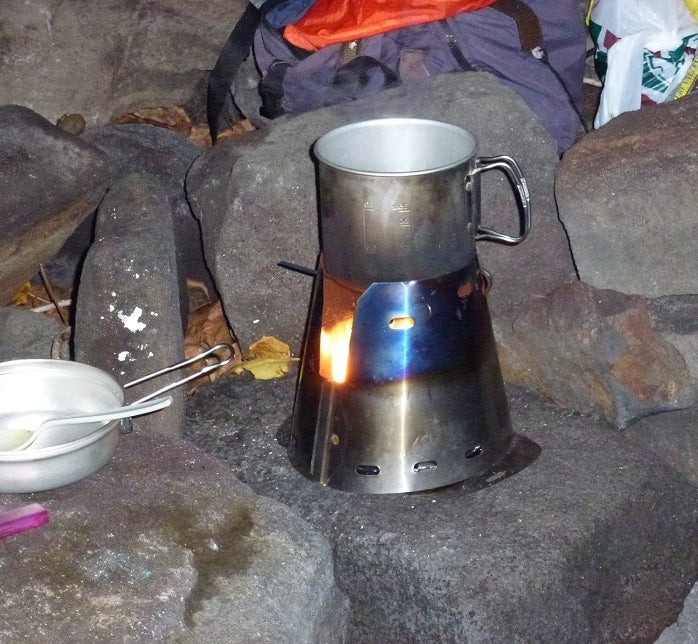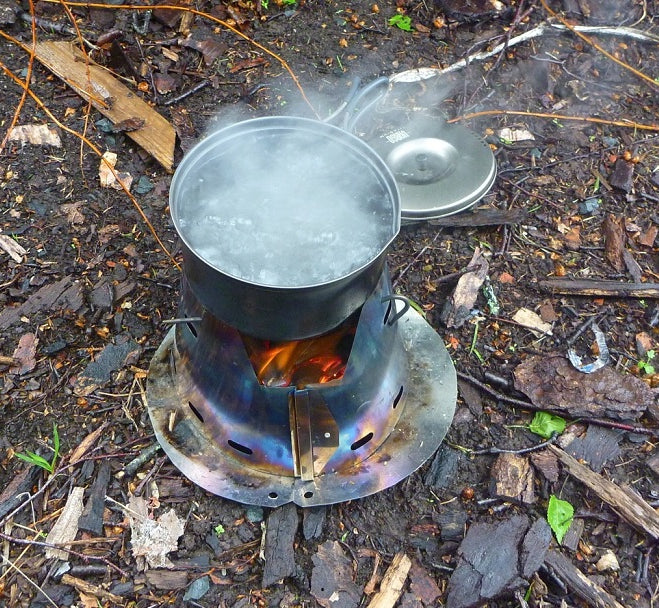 Duane Hall just upgraded his Ti-Tri with an Inferno and sent along these pictures of it in action. Duane notes: "I am delighted with the efficiency of this piece of kit. I liked the Tri-Ti in wood burning mode before; this is better! I didn't time this .9 litre pot of water, but it was fast."