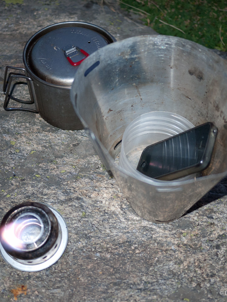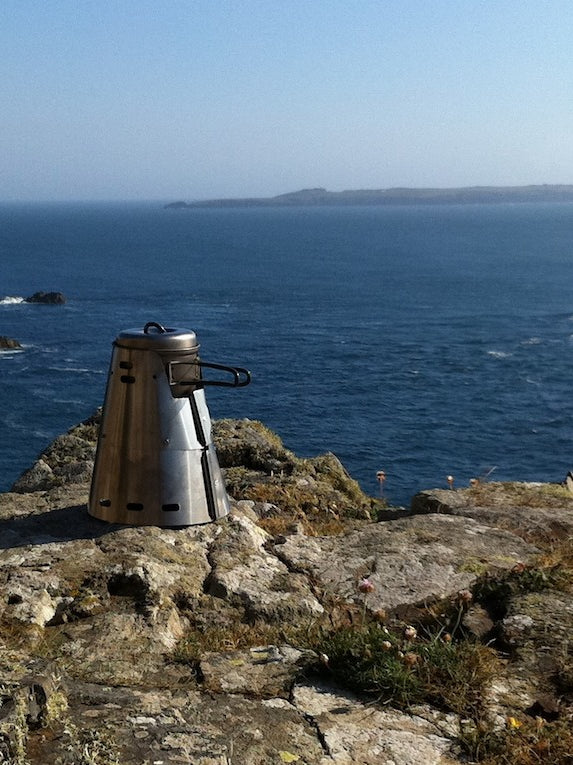 Jim Hudson trying his cone on a windy cliff in Pembrokeshire South Wales. Worked perfectly, tea made in minutes.