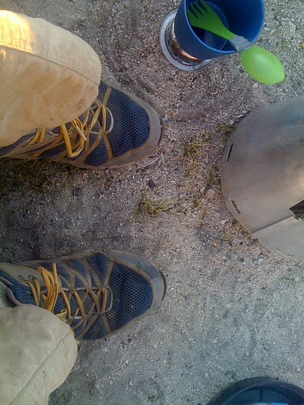 Paul Cronshaw on his PCT section hike from Lake Tahoe to Ashland reports that: "Still in my sleeping bag, I used it every day, with an esbit to heat water for my oatmeal breakfast; at dinner I used biomass twigs to prepare meals. I loved the way it left a zero ash footprint, unlike many of the hideous fire pits. A great stove for the PCT!"