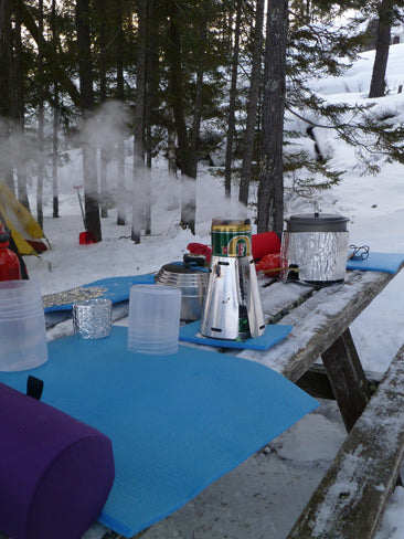 Ray Estrella at Voyageurs National Park for three days backpacking fires up his Keg-F for hot cider. Here it is at the end of February, 4:15 pm at Agnes Lake....it is -2 F!!!