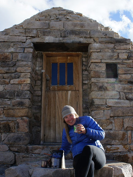 PCT Thru-Hiker "Blackout" enjoying some Muir Hut magic with her Classic Ti-Tri