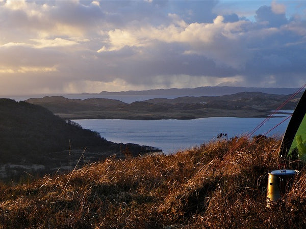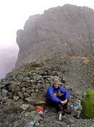 Jim Hudson again brewing tea (yes its true Brits brew tea anywhere!) on the summit of Sulvin in Scotland's North West.