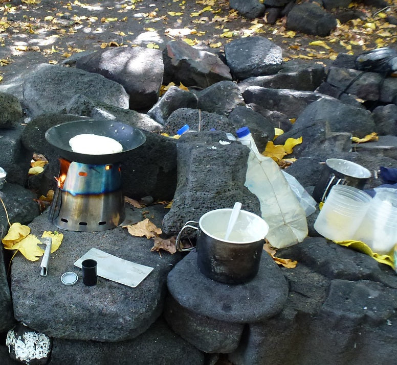 Tyson Marshall on a recent trip in Kaua'i, used his Caldera Sidewinder setup to cook tortillas on his Titanium Floor! With a little oil drizzled over the tortillas, and then cooked on the titanium floor, it is reported that the tortillas made for a great combo with a rice and jerk chicken freezer bag meal!