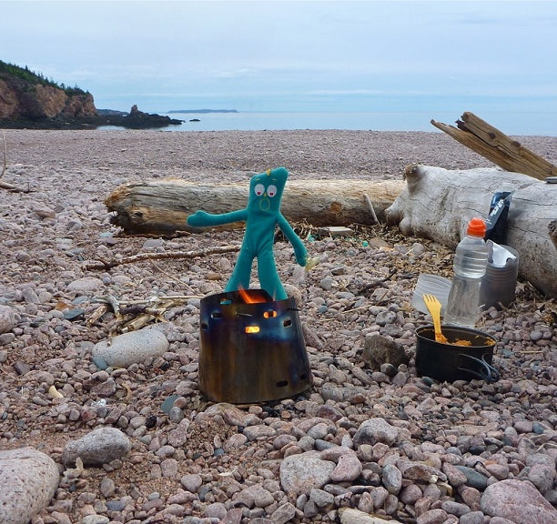 Duane Hall and his green buddy making dinner with his Classic Ti-Tri & Inferno.... still going strong after a full summer's backpacking. Duane notes that it's "a fine, and versatile piece of kit". Taken at Seal Cove beach, Cape Chignecto Provincial Park, Nova Scotia.