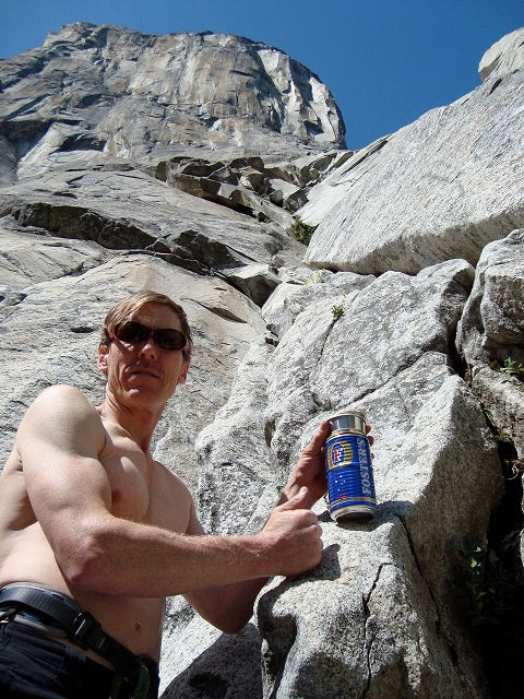 Record holder Hans Florine with his Keg-F scrambling walls in Yosemite. Hans notes: "OK, I didn't take this Trail Designs stove on the 2 hour 37 minute and 5 second ascent of The Nose. But I love Trail Designs stoves for just about all my other light and fast adventures."