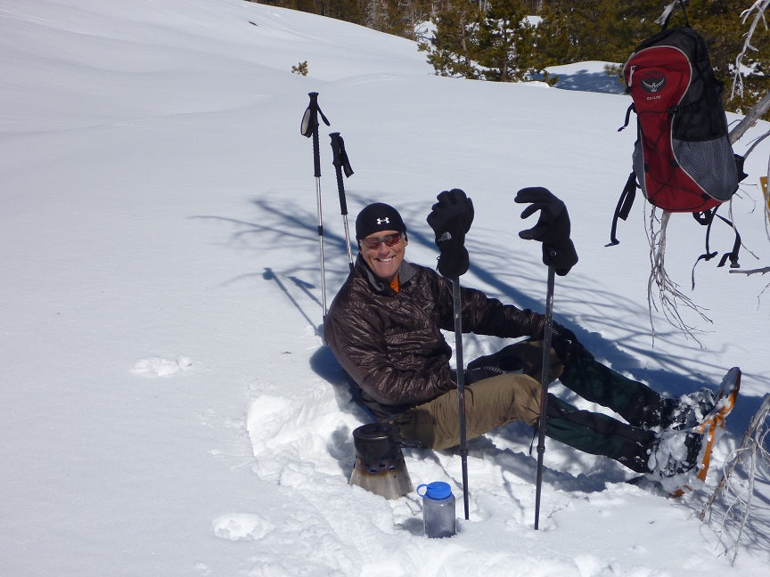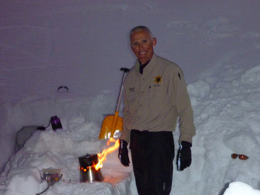 John Silva showing off his Sidewinder Inferno on a Search & Rescue snow camping training trip at about the 7,000 foot elevation in the Sierras in the eastern part of Amador County.