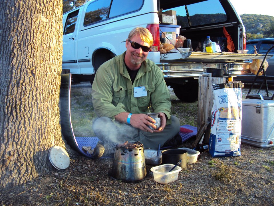 Reggie Garrett cooking chili in his Keg-H on the Ouchita Trail in western Arkansas