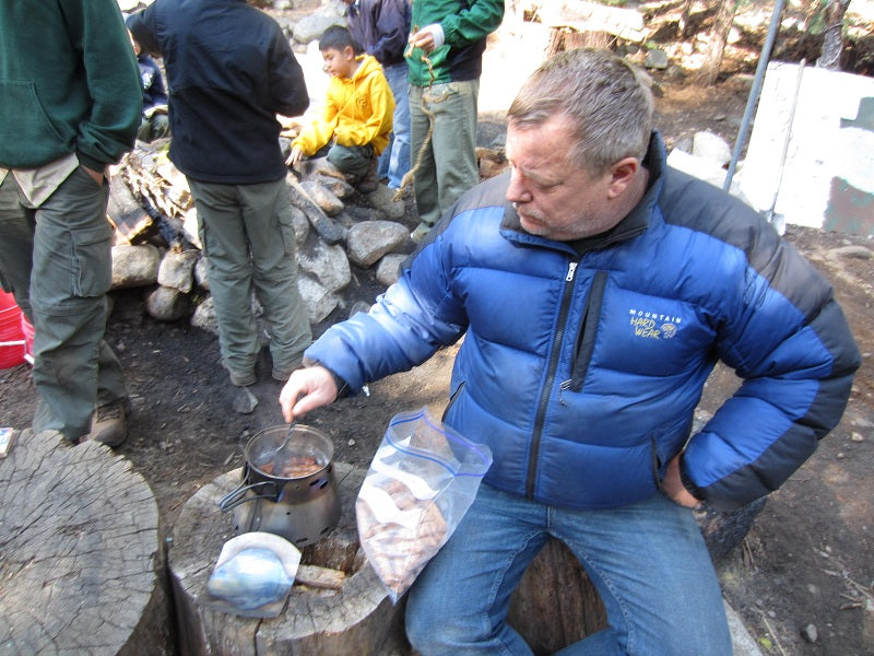 The simple and bullet proof Ti-Tri saved Rod Swanson and his scout troop when the connectors to their Colman propane stoves didn't make the trip! :-)