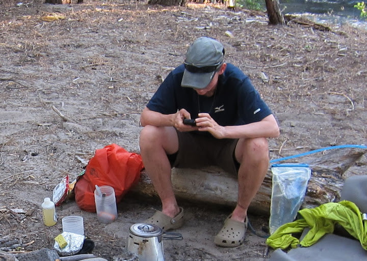 Here's Erin Saver (Walking With Wired) cooking up dinner on the PCT