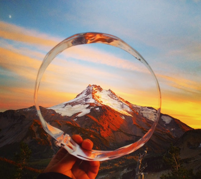 Dudley Chelton also sends this shot looking the other direction at the Caldera posing in front of Mt. Jefferson. He notes: "With my prior alcohol stove system, I'd have had to descend down into the trees to find a place out of the wind to cook dinner and breakfast. With the Caldera Cone windscreen, the alcohol stove didn't even know the wind was blowing on the summit."